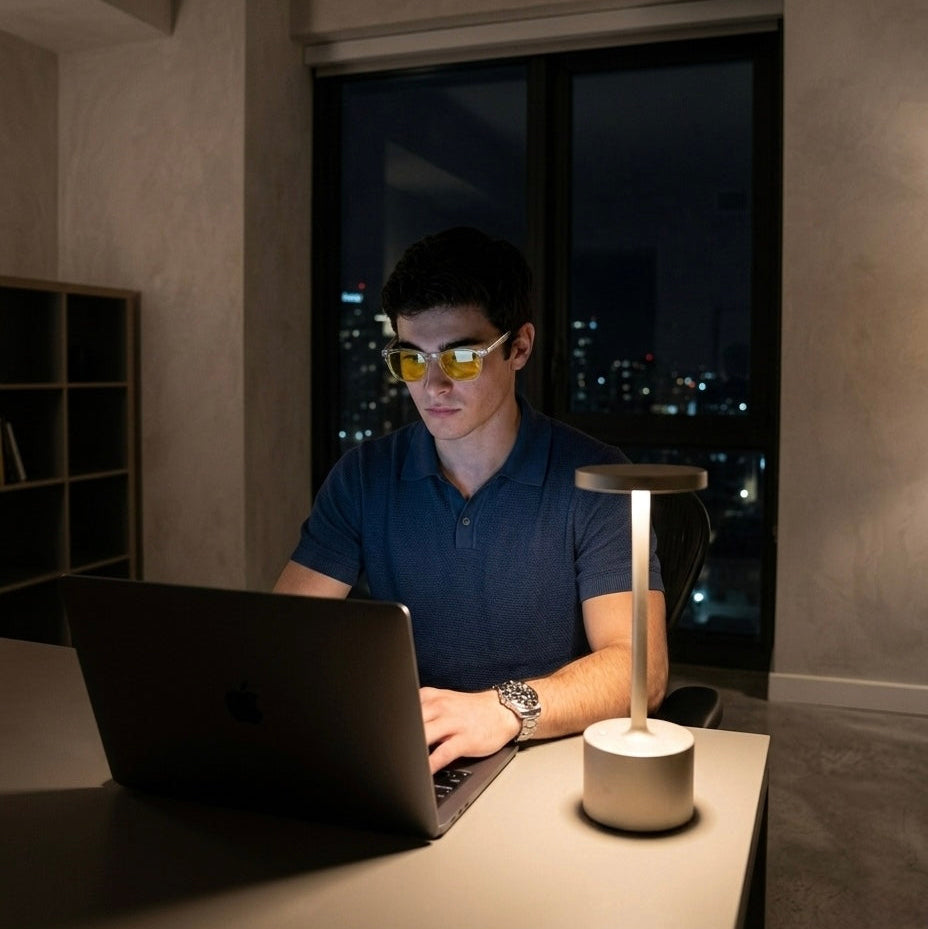 Screens trick your brain into staying awake. Blue light tells your body it's still daytime, killing the melatonin your body needs to wind down. Our glasses block that signal — so when you're done for the night, your body actually knows it. Most customers notice the difference within the first few days.